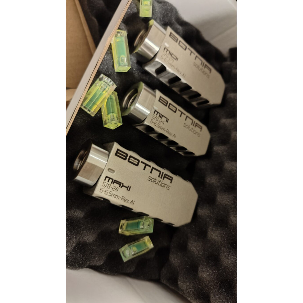 Все дульные тормоза Botnia изготовлены из одинаковых материалов и выполнены по единой высокоэффективной конструкции. Даже самая компактная модель способна работать с магнум-калибрами, включая .338 Win Mag, однако наилучшая эффективность достигается при выборе тормоза, соответствующего отдаче и назначению винтовки.